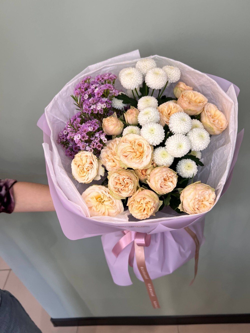 Роза «Джентл трендсеттер», хризантема «Ньютон», Хамелациум